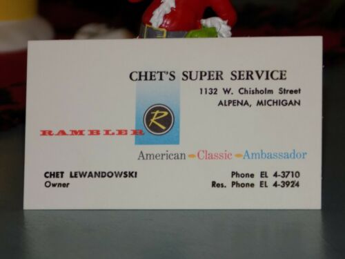 Vintage Chet''s Super Service Rambler Business Salesman Card Alpena MI