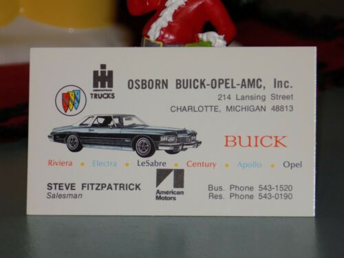 Vintage Osborn Buick Opel AMC Business Salesman Card Charlotte MI