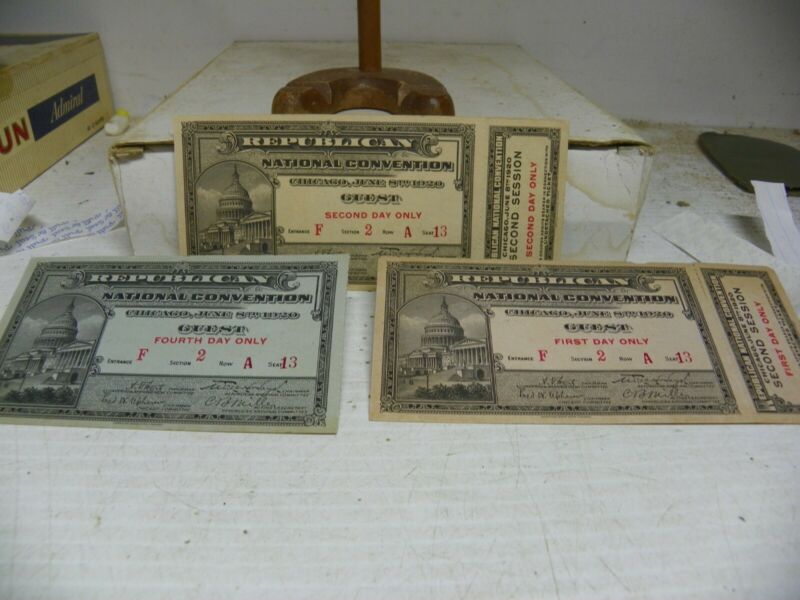 Title (ebay affiliate link): 3 -1920 REPUBLICAN NATIONAL CONVENTION TICKET STUBS/TICKET