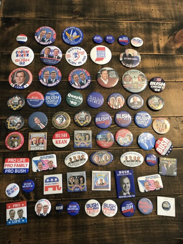 Title (ebay affiliate link): GEORGE W BUSH Cheney Quayle Campaign Lot Big pin pinback button 60+ Lot Case1