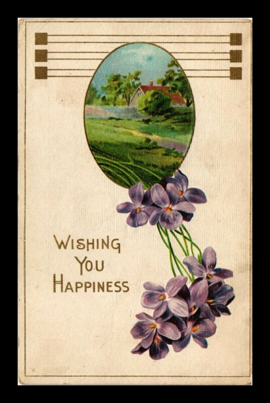 Title (ebay affiliate link): DR JIM STAMPS US WISHING YOU HAPPINESS FLOWERS COUNTRY SCENE TOPICAL POSTCARD