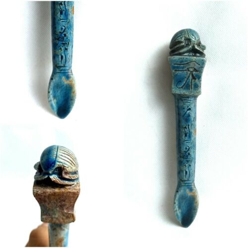 Title (ebay affiliate link): ANCIENT FAIENCE ANTIQUE EGYPTIAN STONE STATUE OF SCARAB SPOON GLAZED AMULET BC