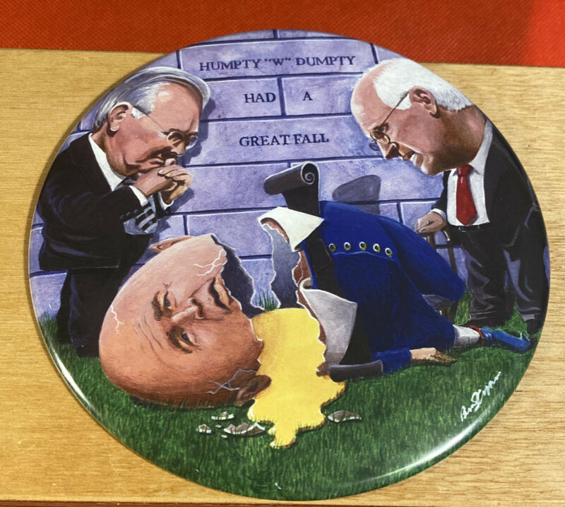 Title (ebay affiliate link): BUSH HUMPTY "W" DUMPTY HAD A GREAT FALL by BRIAN CAMPBELL 2006 POLITICAL BUTTON