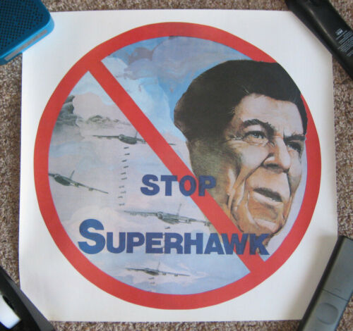 Title (ebay affiliate link): 1984 ANTI RONALD REAGAN "STOP SUPERHAWK" CARTOON PICTURE CAMPAIGN POSTER