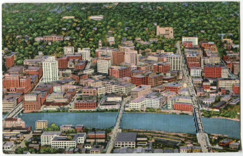 Aerial Town View Grand Rapids MI Michigan Linen 1940s