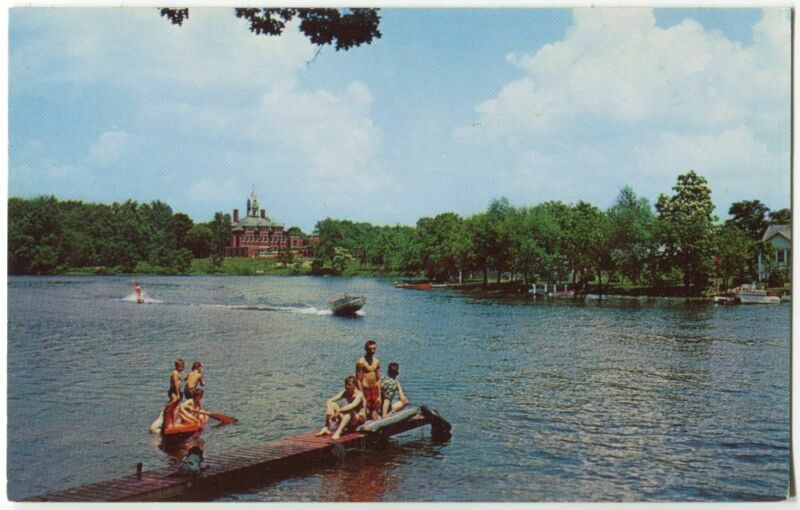 Title (ebay affiliate link): Children Playing In Palmer Lake, School in Background, Colon MI Michigan 1950s