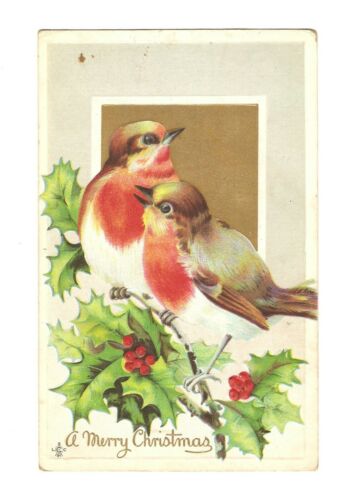 Old Vintage Antique Embossed Postcard Merry Christmas Greeting Card Song Birds