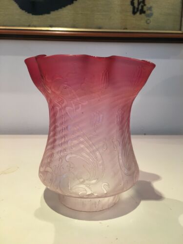 a small cranberry victorian acid etched lamp shade wavy top