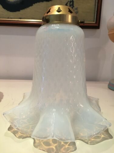 Title (ebay affiliate link): vintage vaseline tulip lamp shade with gallery hanging light ruffle top