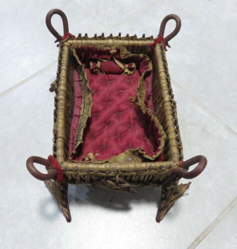 Title (ebay affiliate link): ANTIQUE HANDMADE WOVEN GRASS/STRAW DOLL BED CRIB WITH SATIN PILLOWS & PAD