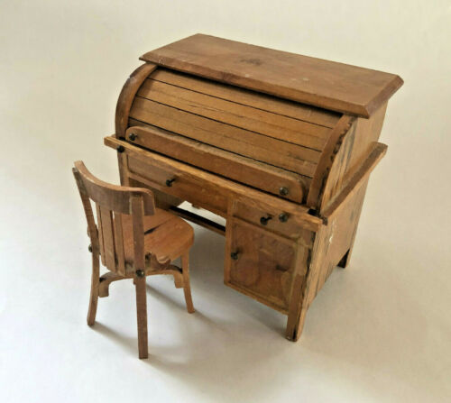 Title (ebay affiliate link): Vintage Shackman Dollhouse Furniture Miniature Roll Top Desk with Chair