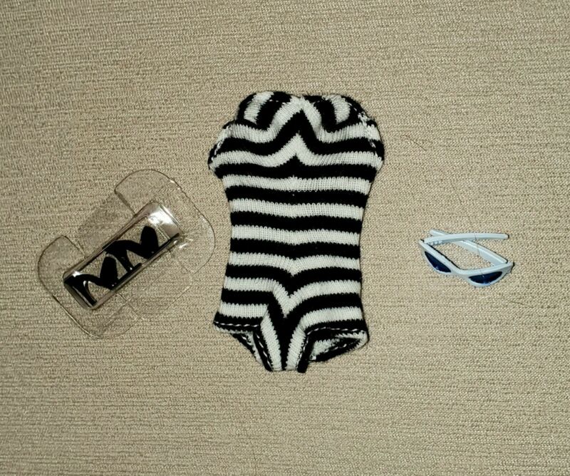 Title (ebay affiliate link): MATTEL VINTAGE BLACK AND WHITE STRIPE REPRO BARBIE BATHING SUIT SHOES SUNGLASSES