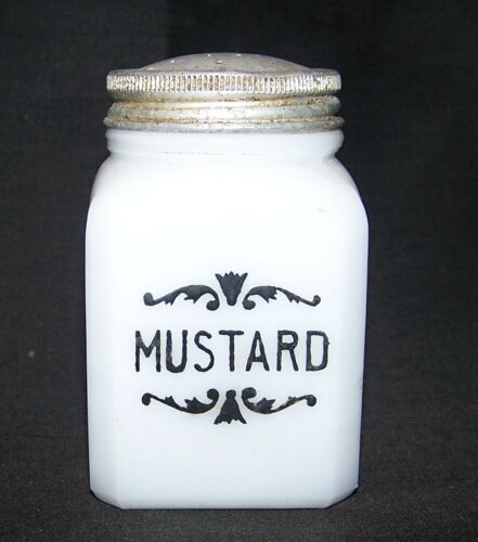 Vintage White Milk Glass Spice Jar Labeled Mustard