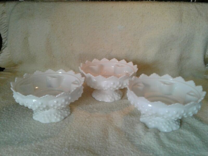 3 Vintage fenton Hobnail White Milk Glass Advent candle Holder Centerpiece Bowl