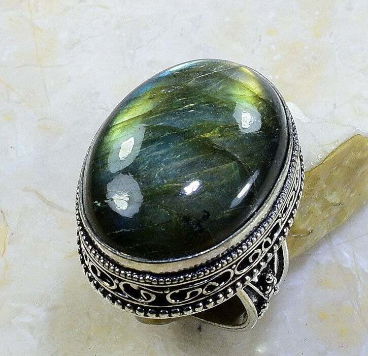 Title (ebay affiliate link): FIRE LABRADORITE ANTIQUE DESIGN RING SIZE 8 3/4; X14412
