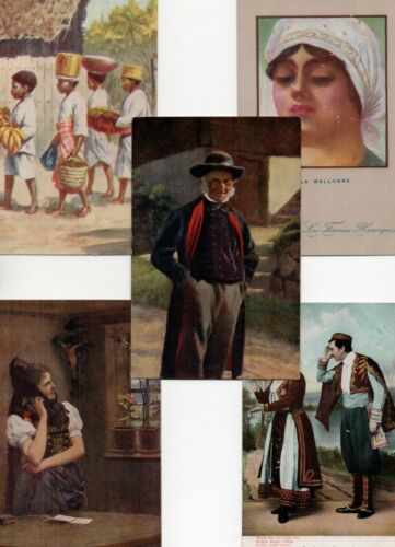 21 VINTAGE postcards: ETHNIC PEOPLE COSTUMES DRESS
