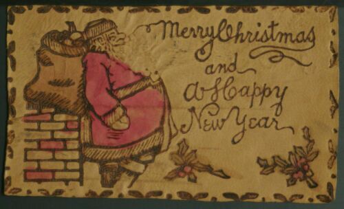 ~SANTA CLAUS~LEATHER NOVELTY~CHRISTMAS HOLIDAY POSTCARD 1907-a934