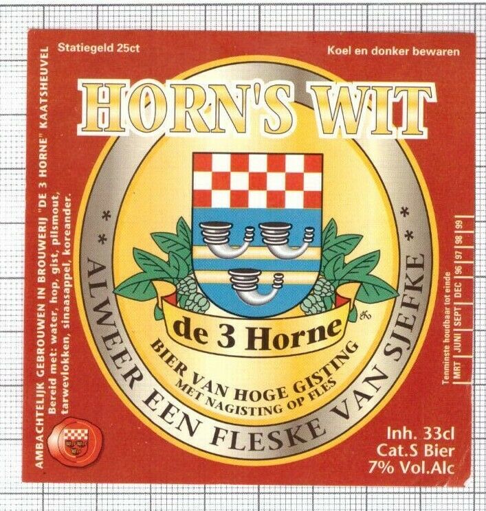 HOLLAND Micro de 3 Horne Kaatsheuvel - beer label B001 167