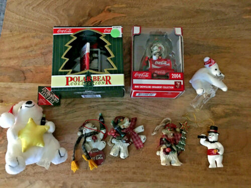 Lot of 8 Coca-Cola Polar Bear Christmas Ornaments Vintage