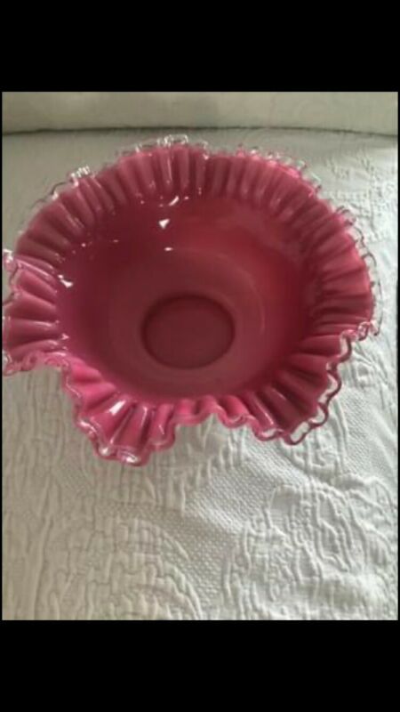 Title (ebay affiliate link): Vintage Fenton Cranberry and White Ruffled Edged Milk Glass Bowl