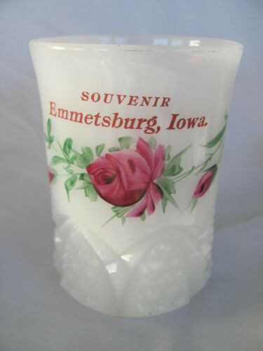 Title (ebay affiliate link): Vintage EMMETSBURG IOWA souvenir white milk drinking GLASS with ROSES