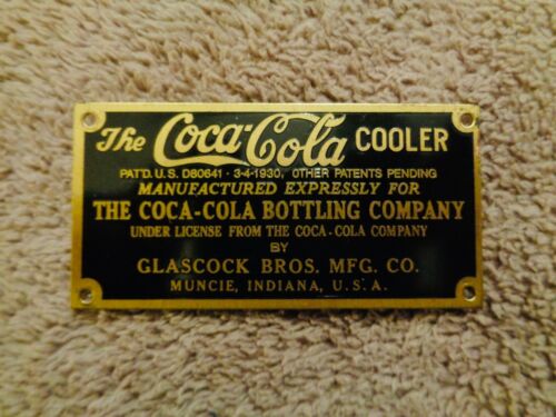 Title (ebay affiliate link): Old Antique Vintage Coca Cola Cooler Glascock Bros Brass Manufactures Tag 1930
