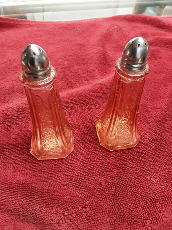 Pink Glass Depression Era Salt And Pepper Shakers