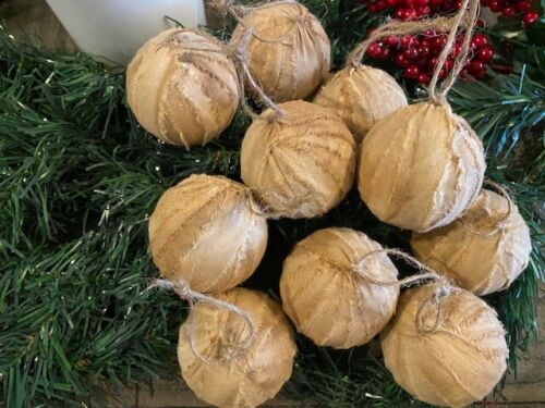 Title (ebay affiliate link): 10 Coffee Stained Muslin Snowballs Fabric RAG BALLS Christmas Ornaments A21