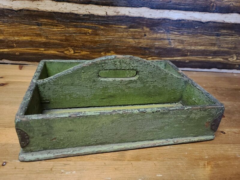 Title (ebay affiliate link): Antique Primitive Old Green Paint Wooden Handled Tool Caddy Carrier AAFA