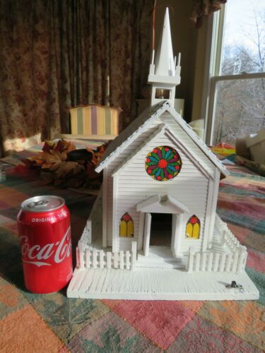 Title (ebay affiliate link): HANDMADE WOOD CHURCH~LIGHTED~ Primitive with Bell Steeple~VINTAGE FOLK ART