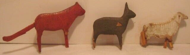Title (ebay affiliate link): 3 Old Wood German Carved Animals Christmas Putz Village AS IS Fox Rabbit Sheep