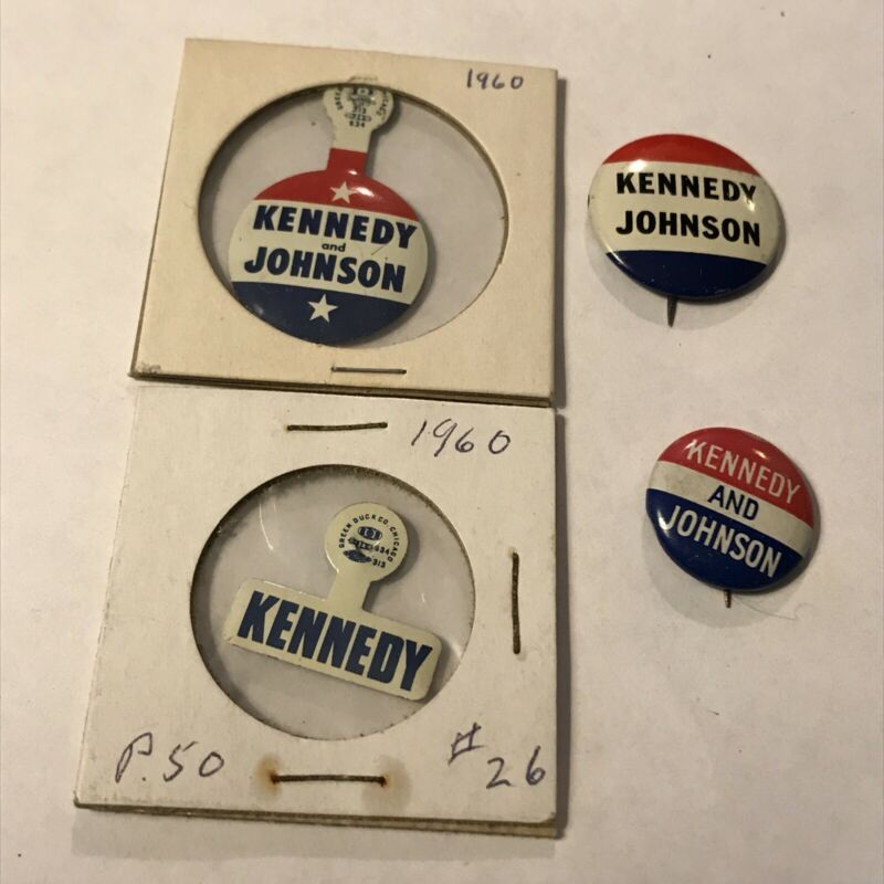 1960 KENNEDY JOHNSON JFK Campaign Pinback Button Pin Tab Vintage C2