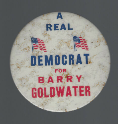 Title (ebay affiliate link): UNUSUAL 1964 " A REAL DEMOCRAT FOR BARRY GOLDWATER" FLAG CAMPAIGN BUTTON