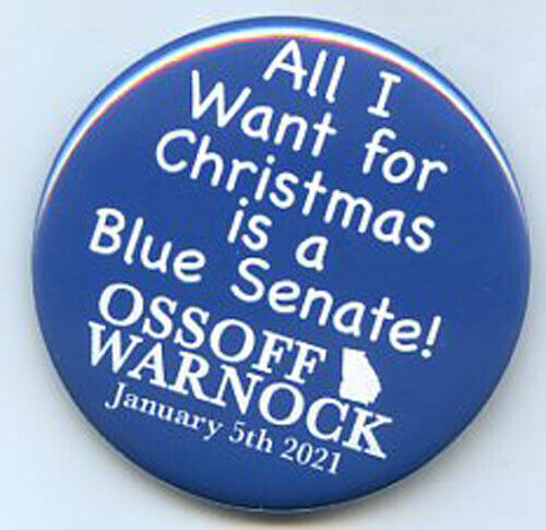 Title (ebay affiliate link): All I want for Christmas ia a blue Senate Ossoff Warnock Georgia button Biden