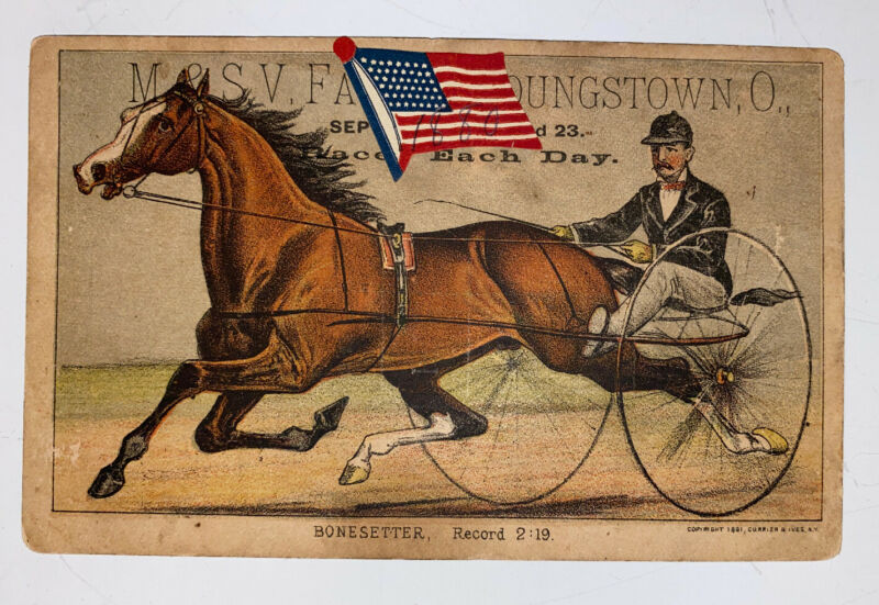 Title (ebay affiliate link): ANTIQUE VICTORIAN ADVERTISING HORSE RACES TRADE CARD BONESETTER