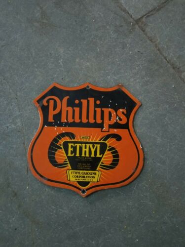 Porcelain Phillips 66 Ethyl Enamel Sign 6" x 6" inches