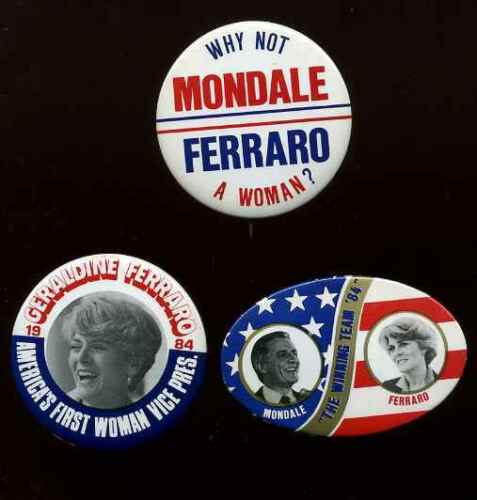 Title (ebay affiliate link): WALTER MONDALE/GERALDINE FERRARO Scarce VEEP POLITICAL BUTTON w/Bonus 082-B