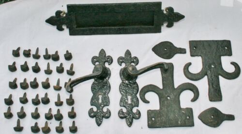 Vintage Reclaimed Wrought/Cast Iron Fleur-de-Lys Black Door Furniture Letter box
