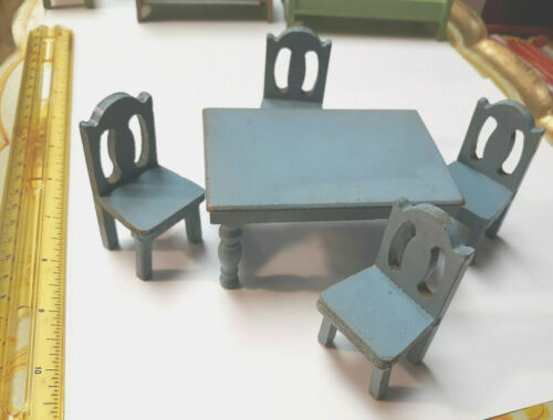 Title (ebay affiliate link): Old Strombecker Dollhouse Furniture Blue Kitchen Dining Room Table Chairs lot