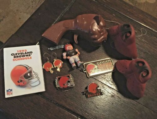 Title (ebay affiliate link): Vintage Cleveland Brown Pins, Key Chain, Dog Noses, Schedule, Dog squeaker