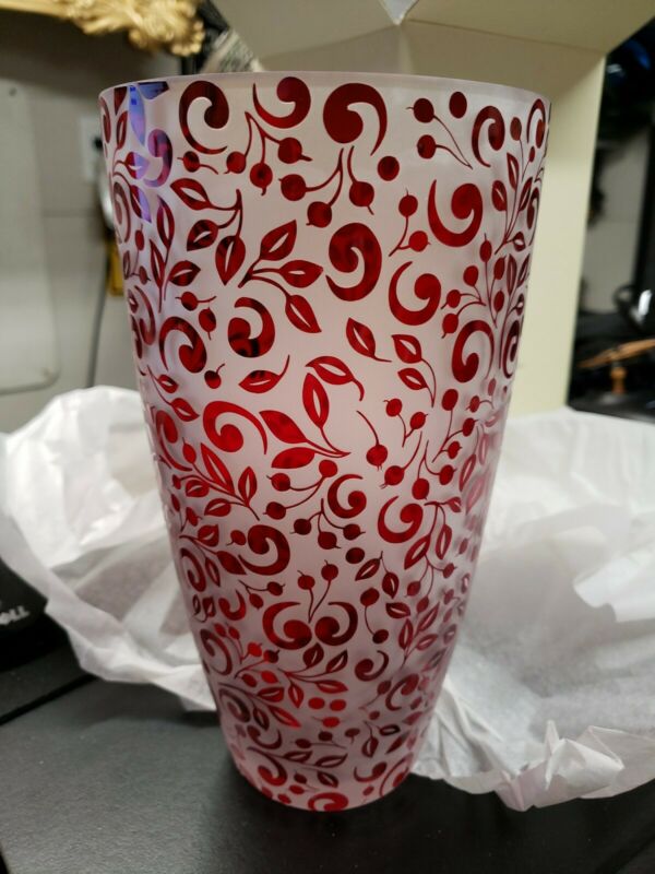 Lenox Floral Scroll Red Vase 10" Tall NIB
