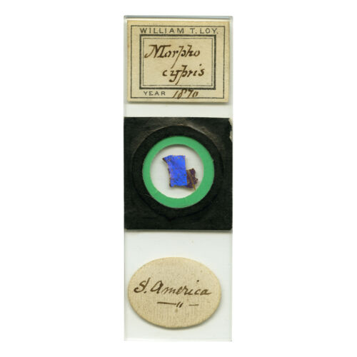 Antique Microscope Slide of Morpho cypris butterfly wing by William Loy 1870