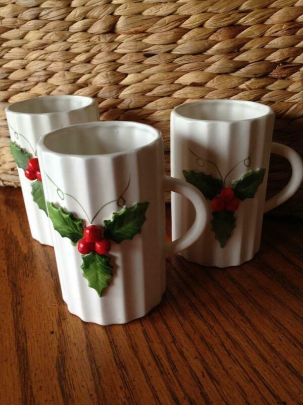 Title (ebay affiliate link): Vintage Christmas China Mugs Holt Howard 1962 with 3-D holly and berries