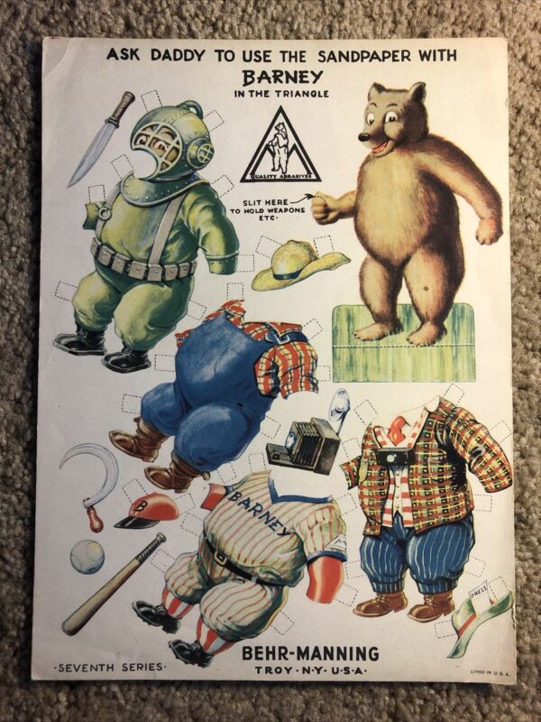 Vintage Advertising Paper Doll, Barney Bear, Uncut