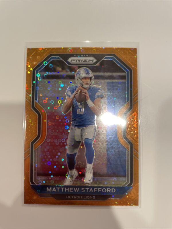 Title (ebay affiliate link): 2020 NFL Prizm | MATTHEW STAFFORD | Orange Disco | #199 | FRESH | Lions