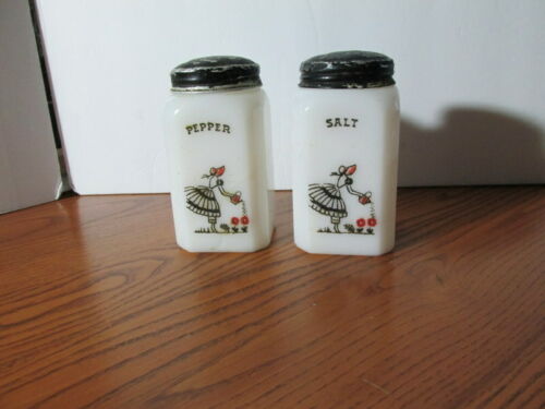 Title (ebay affiliate link): Milk Glass Salt And Pepper Shaker Set Girl Watering Flowers