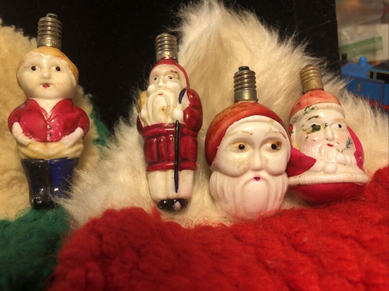Title (ebay affiliate link): 3 Antique Santa Milk Glass Light Bulbs & 1 Lady/man? Milk Glass Bulb JAPAN