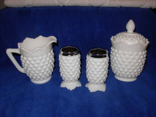 Title (ebay affiliate link): FENTON MILK GLASS HOBNAIL SUGAR, CREAMER, SALT & PEPPER SHAKERS SET