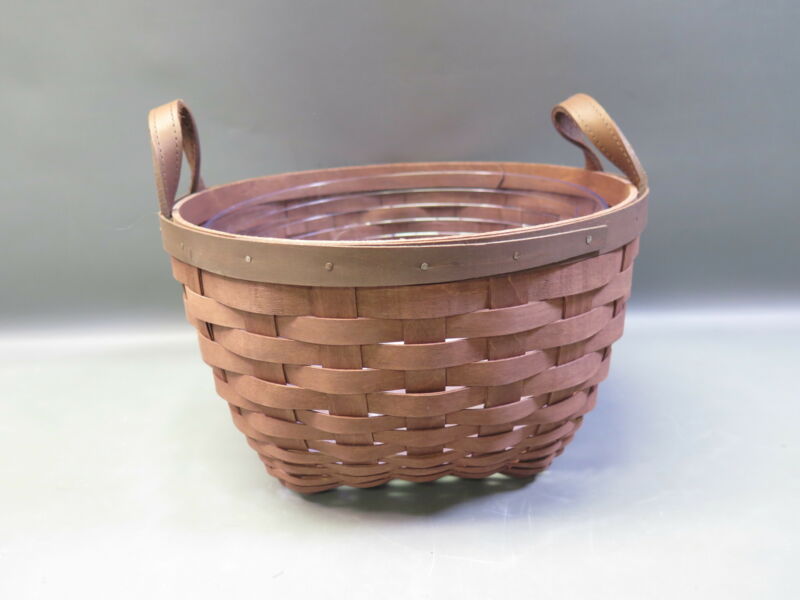 Title (ebay affiliate link): Longaberger 10" Round Warm Brown Basket w/ Handles & Protector