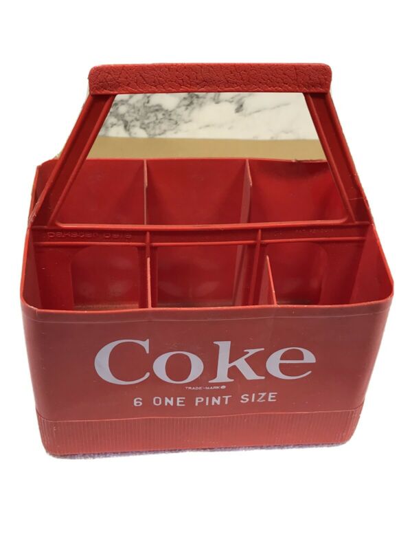 Title (ebay affiliate link): Vtg Coke Coca-Cola Soda Plastic 6 Pack Glass Pint Size Bottle Crate Carrier